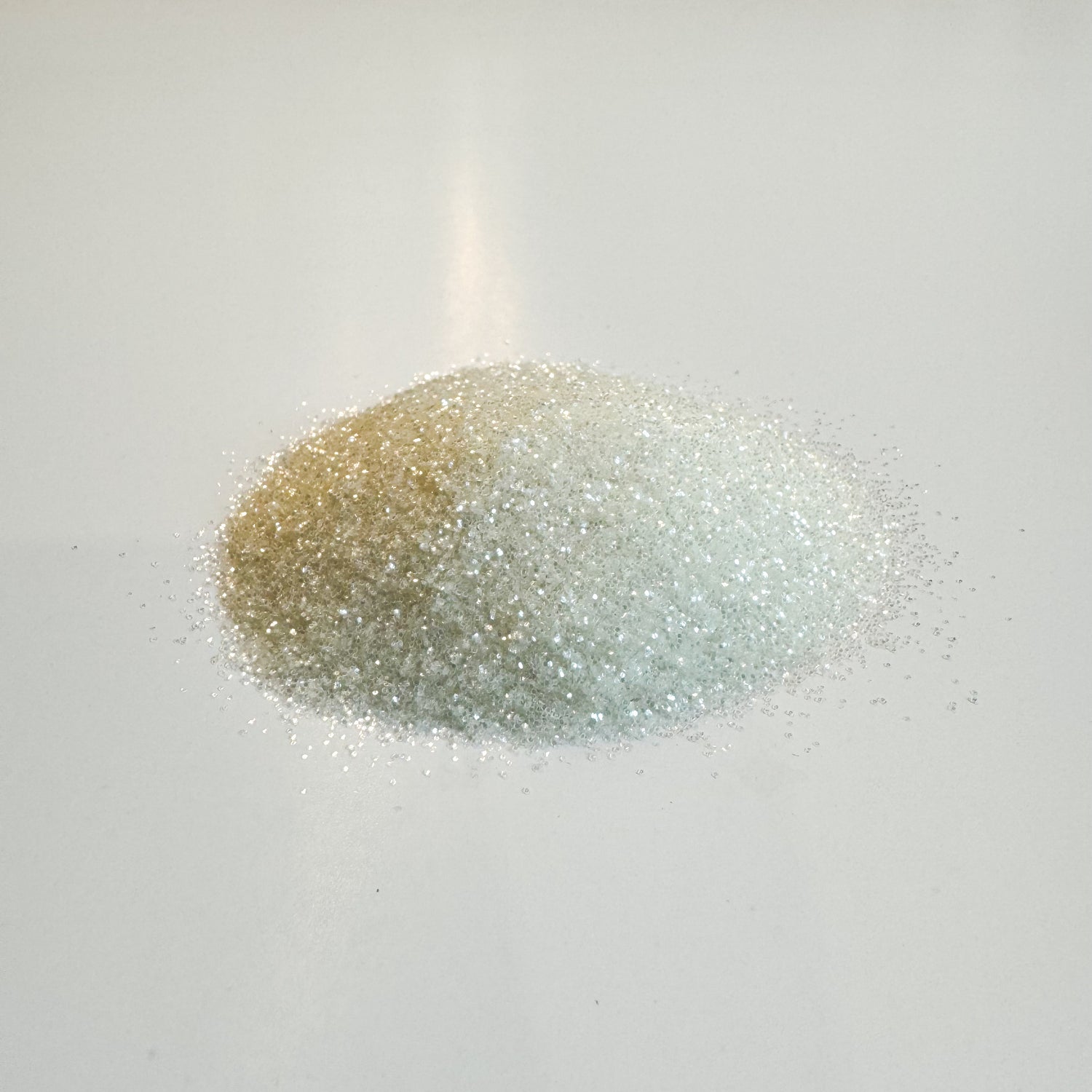 A fine, shimmery off-white bio glitter reminiscent of fresh snow on a glacier, sparkling under the arctic sun.