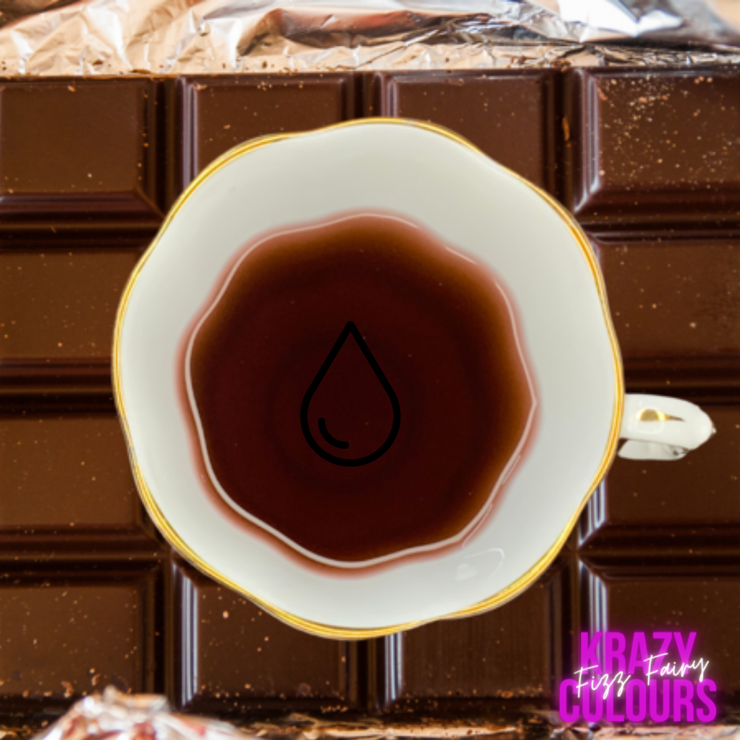 Liquid crazy dye Chocolate gives a deep chocolate brown in clear bases and lighter brown in white bases. Use it to colour liquid soap, bath whip, soap frosting, m&p soap, lotions, salts and more. Not recommend for bath bombs as they are water based.